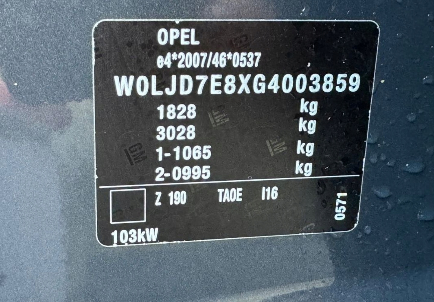Легенда служби, яка підтверджує Віне № в Opel Aso
