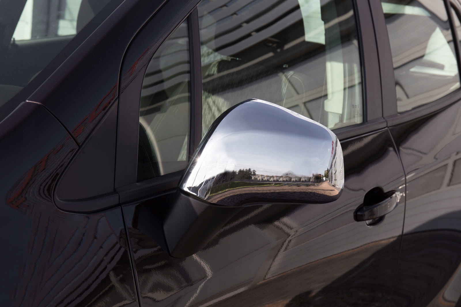 декоративні, хромовані дзеркала охоплюють підкреслюють динамічний стиль Opel Mokki. Шапки, завдяки дзеркальному блиску хромованої поверхні, доповнюють стилізацію автомобіля, надаючи йому індивідуалізований характер. Продукт виготовлений з високоякісної ABS.