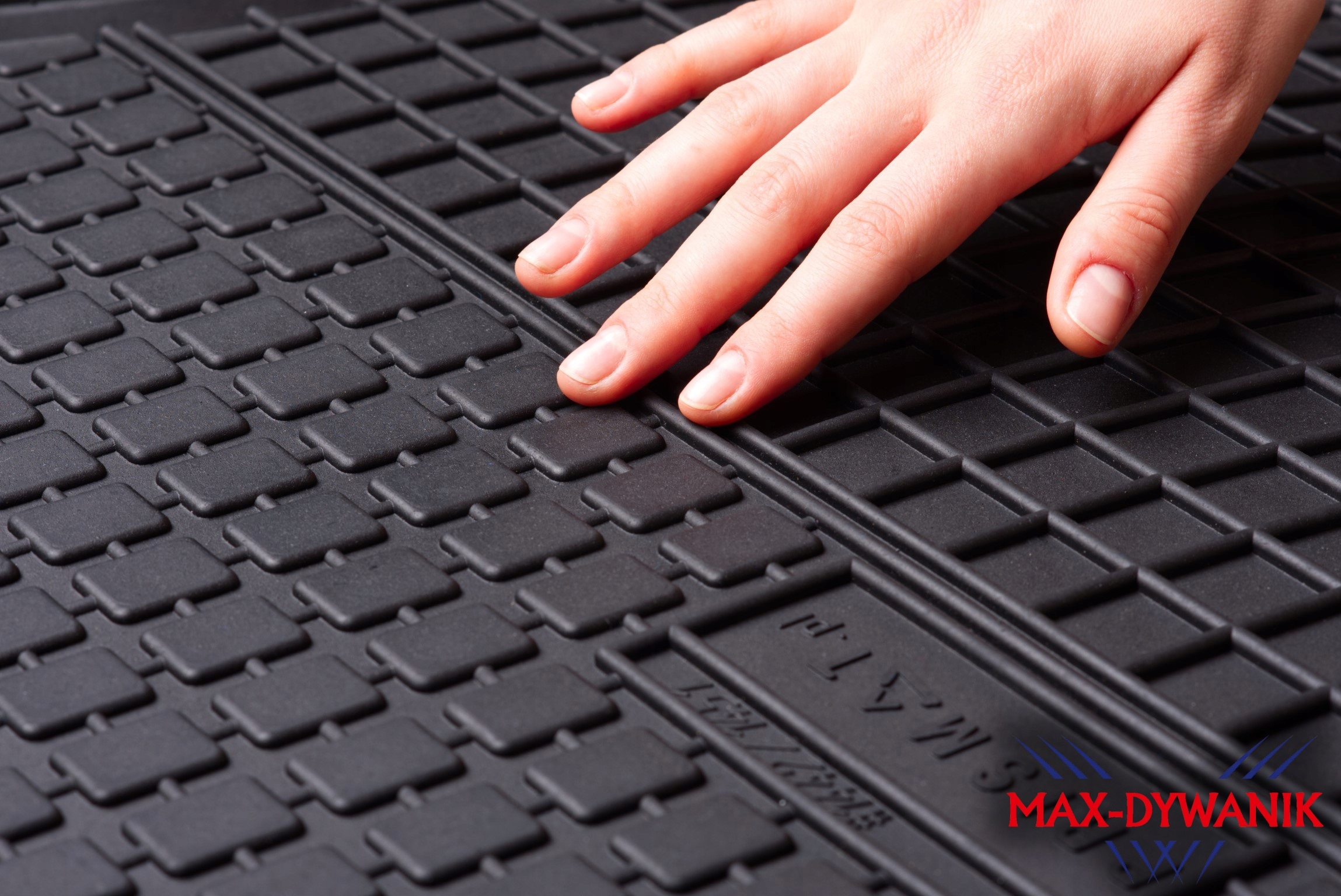 Пропоновані килимки були точно розроблені за формою підлоги, враховуючи не лише марку/модель автомобіля, а й рік випуску та, в обґрунтованих випадках, кузов версія. Килимки виготовлені з високоякісної гумової суміші, яка не містить шкідливих для здоров'я речовин, що забезпечує безпеку використання.Делікатний захисний комір (кантик) (висотою 1 см) навколо килимків ефективно затримує воду та бруд. , захищаючи оригінальна оббивка автомобіля від бруду. Знизу килимки мають маленькі шипи, які додатково захищають їх від ковзання. Водійський килимок був додатково посилений у найбільш критичному місці (місце, де п’ята стикається з поверхнею килимка), щоб захистити килимок від стирання.