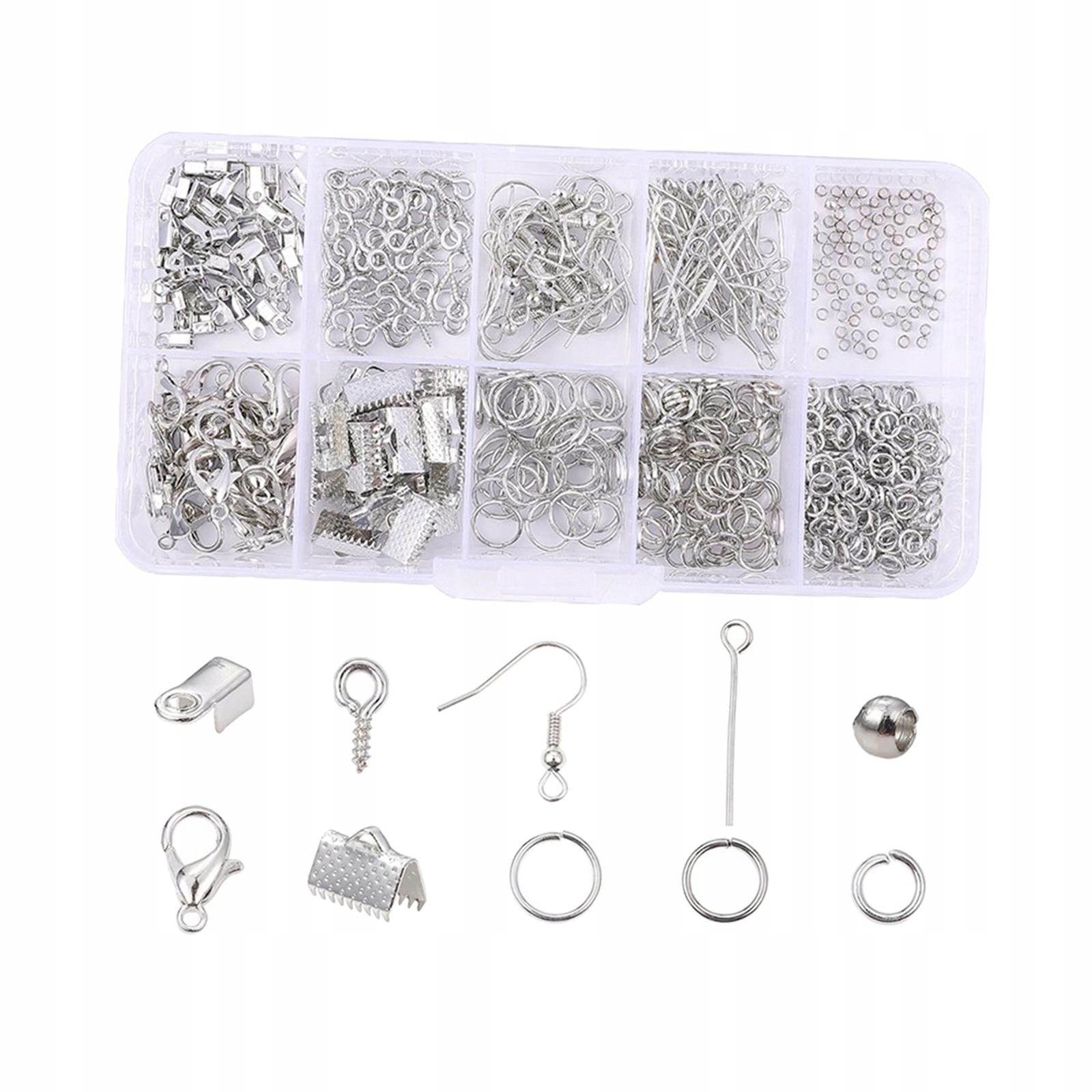 Матеріали для виготовлення ювелірних виробів: включає 100* петельних затискачів (3x6 мм), 50* ковпачків для очей (4x8 мм), 20* гачків для сережок (20x20 мм), 50* шпильок (24 мм), 100* намистин для гофрування (2 мм), 20*Застібка Cabiner (12 мм), 20*Залізні кінці стрічки (10 мм), 50*Відкриті стрибкові кільця (0,8 x 8 мм), 100*Відкриті стрибкові кільця (0,8 x 6 мм), 200 * Відкриті стрибкові кільця (0,7 x 4 мм) ).
