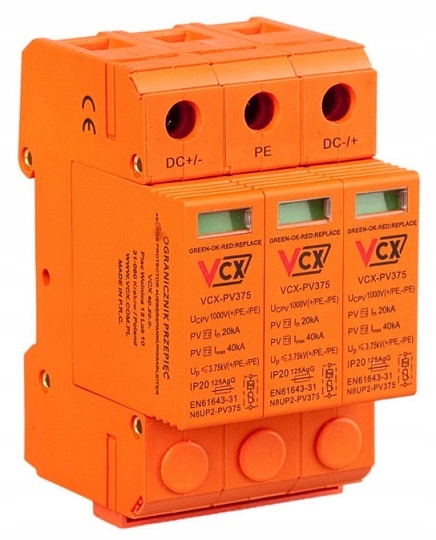 VCX-PV375-C 1000 В постійного струму класу T2 – це технічно передовий розрядник найвищої якості, призначений для захисту фотоелектричних установок.