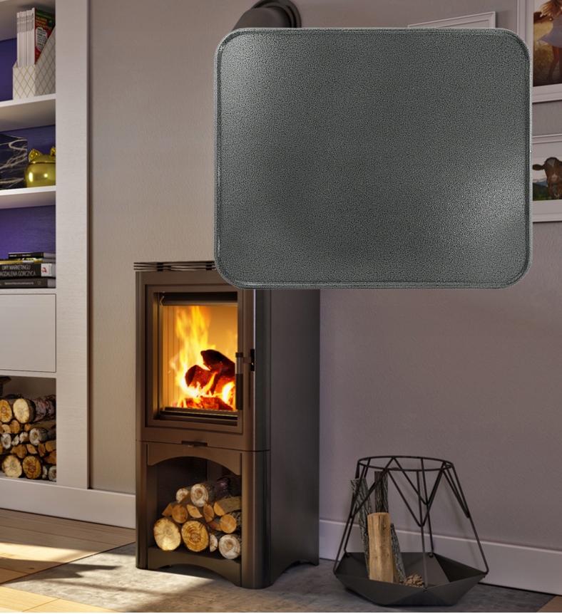 Оплачений аркуш з розмірами 50x80 см , виготовлений з високотемпературного матеріалу, призначений для захисту підлоги проти жаби, що падає з каміна або печі. Поверхня аркуша покрита графітовим порошковим лакам, що забезпечує його естетичний вигляд та полегшує чистоту. Продукт розлютив сторони для додаткової елегантності.
