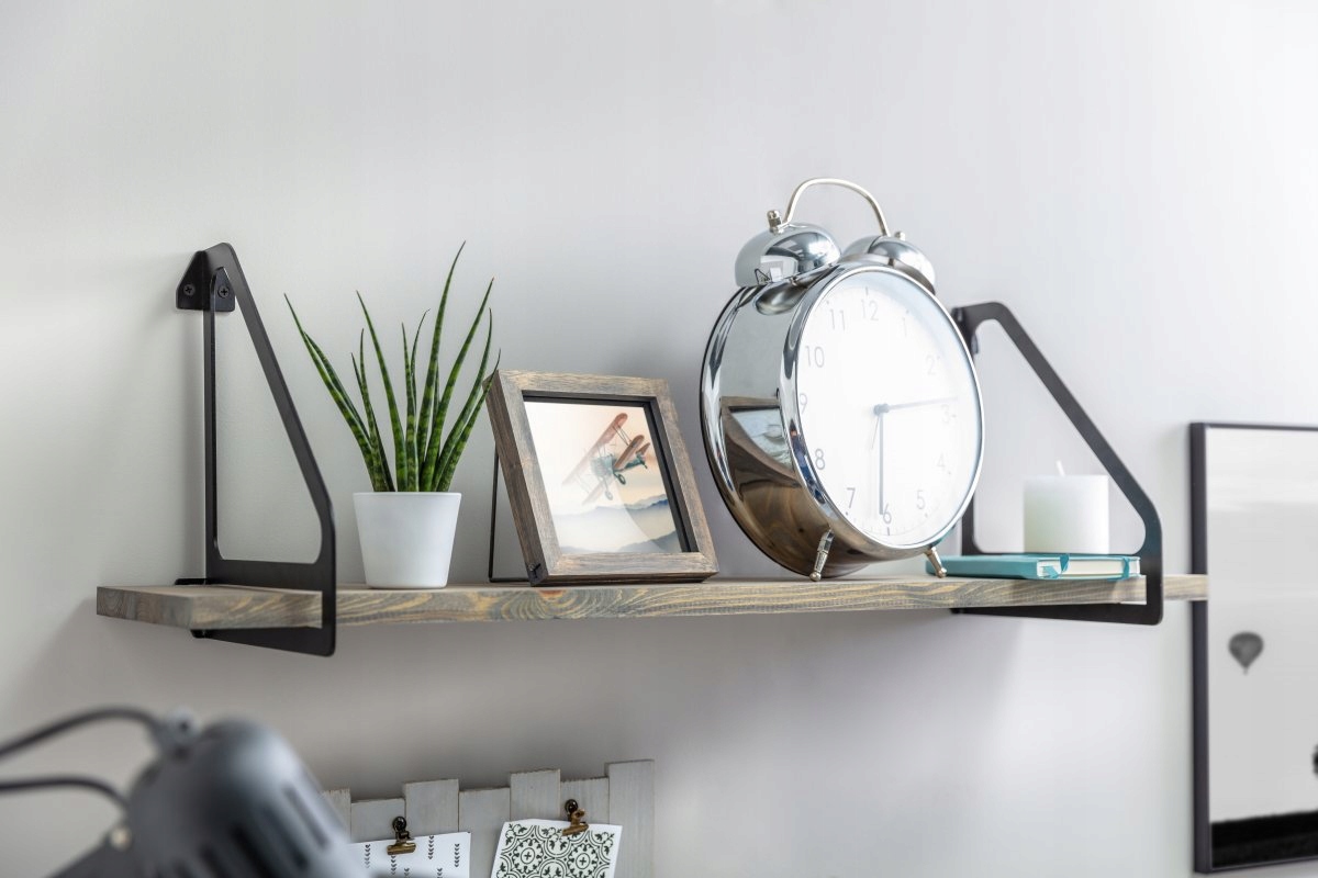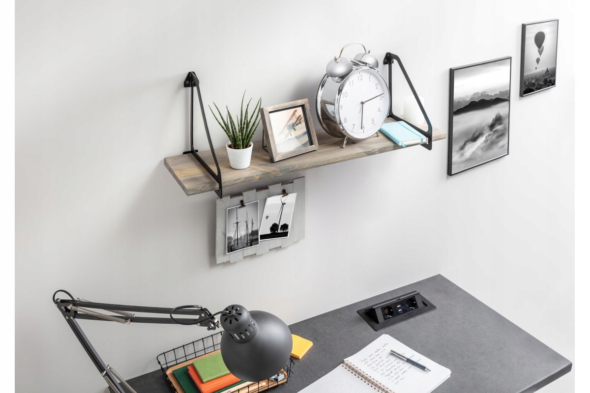 Чорна опора створює цілісну та сучасну композицію з дерев’яною полицею. Він ідеально підходить для мінімалістичного, скандинавського та сільського інтер’єру, тобто там, де є прості меблі без зайвих прикрас та візерунків. Установка плити в нижній частині, між двома елементами, додає опорі привабливості та виділяє її на тлі звичайних опор. ІНГРІД - цікава і сучасна прикраса для стін, і в той же час це функціональна деталь - на неї можна спиратися книжками. На такій полиці красиво виглядатимуть, наприклад, фоторамки, годинник, зелені рослини в керамічних або дерев'яних горщиках.