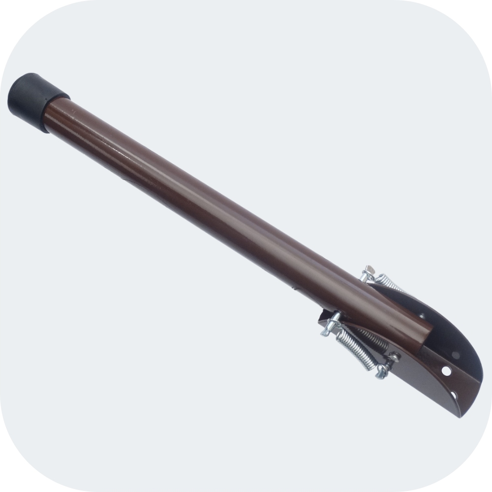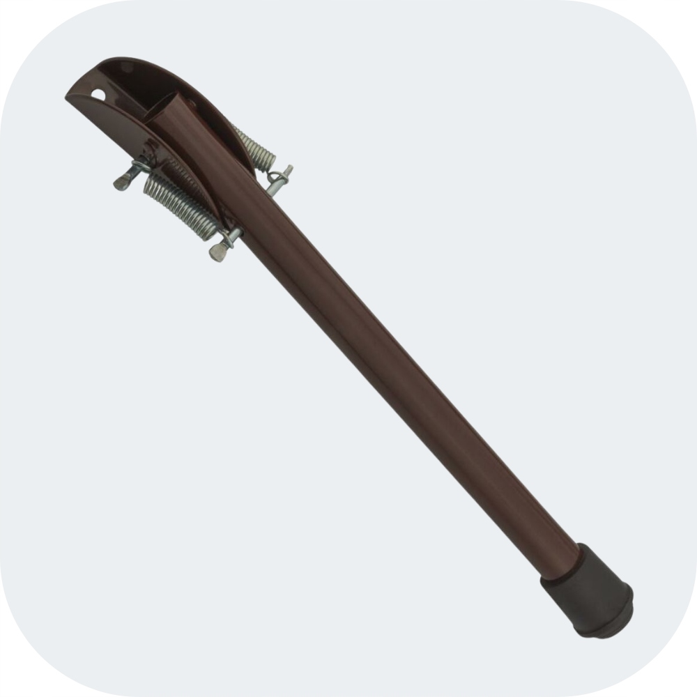 Коричневі опори для дверей гаража з гумовою накладкою також є дуже корисним інструментом, який допомагає тримати двері відкритими під час виконання різноманітних дій у гаражі. Ці опори складаються з коричневої металевої планки для стабільності та рівноваги та гумового ковпачка на кінці штанги, щоб двері не ковзали.