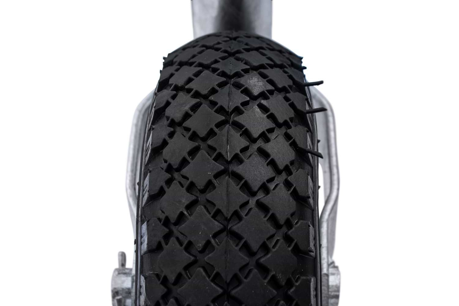 Колесо розроблено для тривалого терміну служби та стійкості до пошкоджень. Оцинкована труба діаметром 48 мм захищає від корозії, що робить виріб придатним навіть у складних погодних умовах.