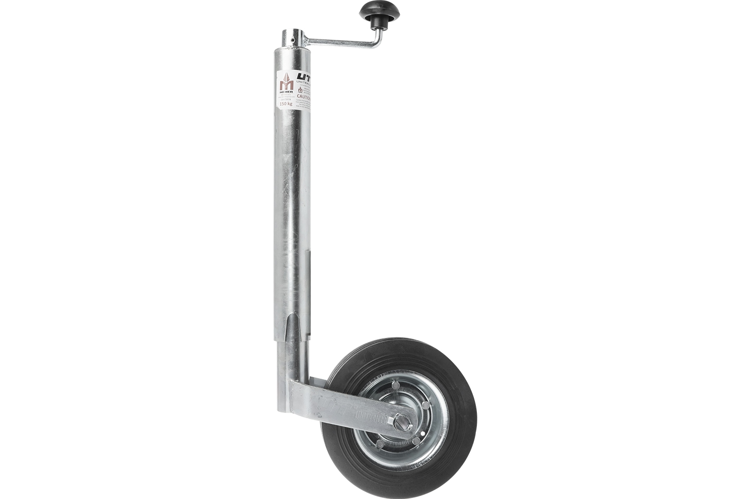 Колесо опорне сталеве для причепа Unitrailer з діаметром труби 48 мм. Полегшує прикріплення та знімання причепа з гака та маневрування ним