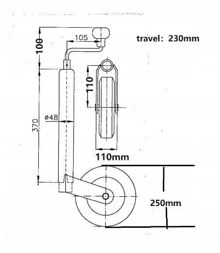 Koło podporowe manewrowe do przyczepki lawety kempingu 150 kg fi48 pompowan