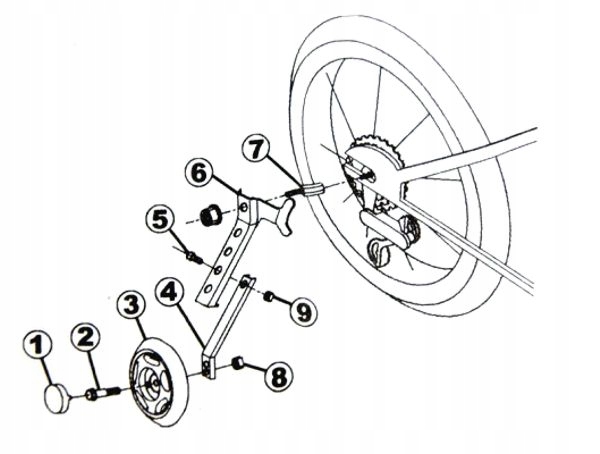 - Набір бічних опорних коліс із міцними сталевими кронштейнами з регульованою довжиною, щоб їх можна було встановити на дитячі велосипеди з колесами 16-24"