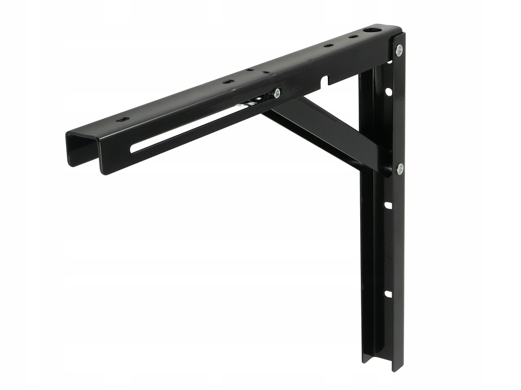 Міцний складаний кронштейн виготовлений із масивного металевого профілю. Продукт із широким спектром застосування, особливо корисний у місцях з обмеженим простором. Характеризується високою стійкістю до навантажень (з двох частин, розташованих на відстані 60 мм, до 100 кг). Кронштейн оснащений відкидним замком. Польський продукт.