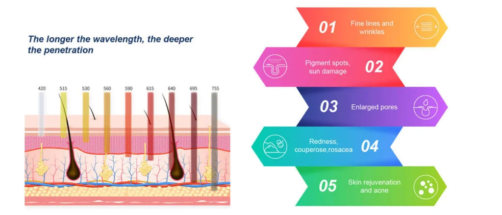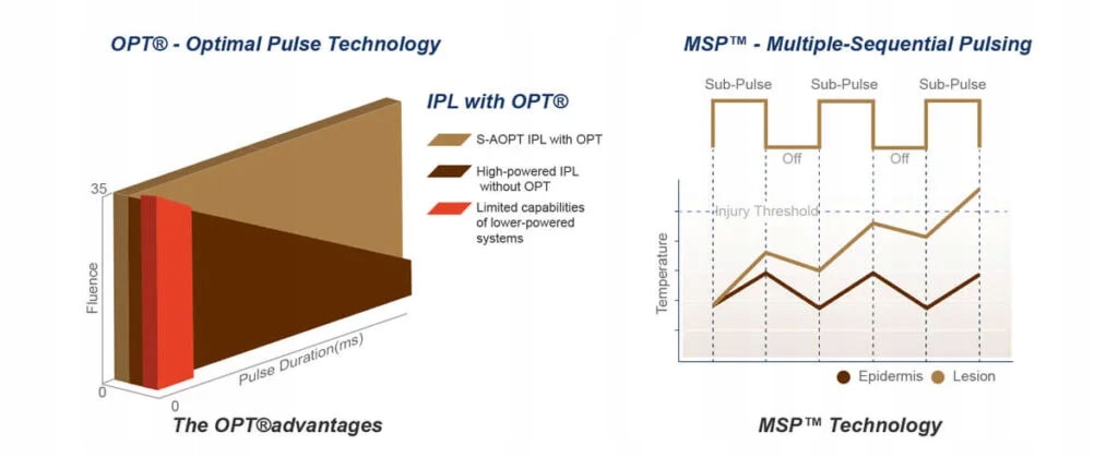 Технологія IPL в OPT Glow дозволяє точно стимулювати шкіру за допомогою імпульсного світла вузького спектру, зосередженого на поглинанні меланіну, кисню та гемоглобіну.