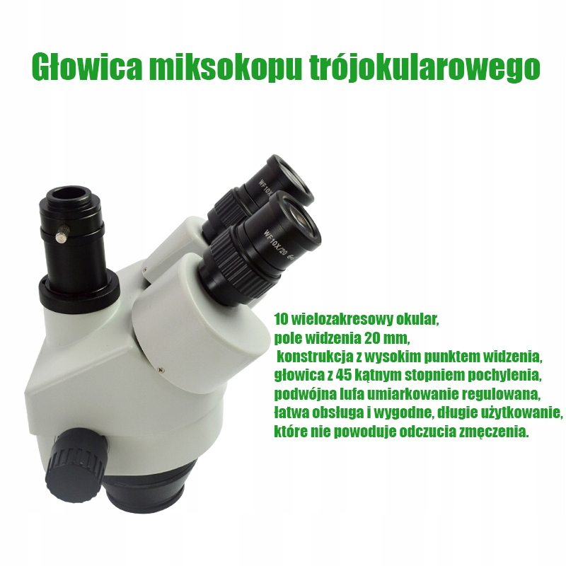 За стандартом, як і в кожному стереоскопічному мікроскопі, діапазон збільшення на камері (можлива додаткова модернізація) і безпосередньо через окуляр буде відрізнятися у випадку камери, стандартний діапазон становить приблизно 80-120 разів, а в при спостереженні через окуляр — 7-45Х. Це пояснюється тим, що те, що ми бачимо через камеру, коригується лише оптикою мікроскопа, тоді як у випадку з окуляром – і мікроскопом, і оптикою. Це можна виправити на плюс або мінус, використовуючи відповідні лінзи, доступні на інших наших аукціонах.