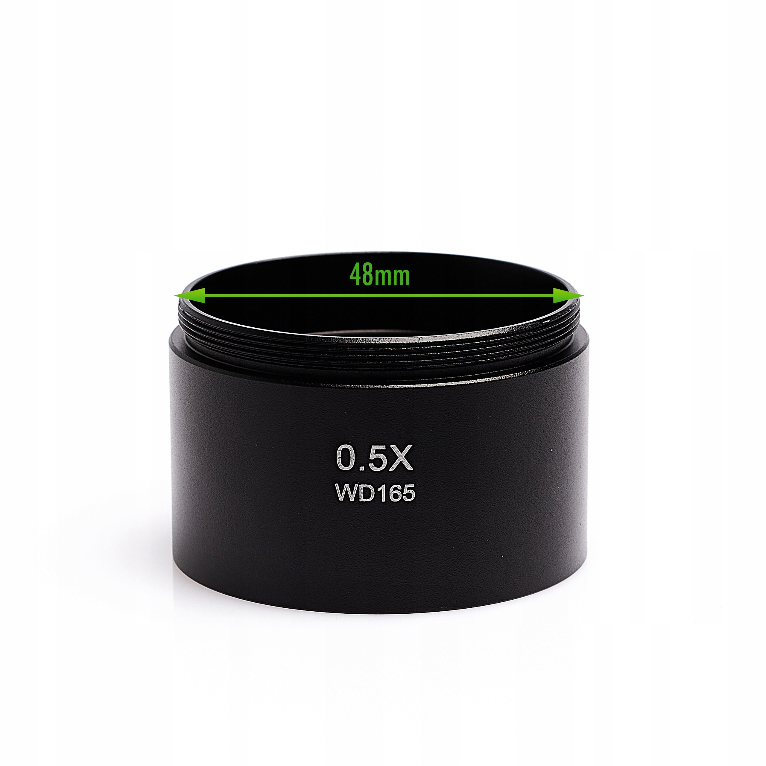 Об'єктив 0,5x для стереоскопічних мікроскопів із нашої пропозиції. Використовується для збільшення діапазону збільшення. Об’єктив кріпиться за допомогою різьби в нижній частині стереоскопічної головки.