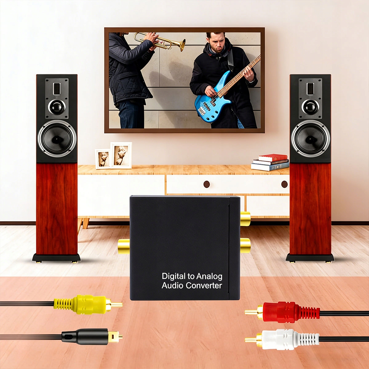 ✅Просте встановлення: конвертер простий у використанні - просто підключіть його, і він автоматично виявить аудіосигнал і негайно почне працювати. Під’єднайте оптичний або цифровий коаксіальний вихід HDTV, телевізійної приставки та інших пристроїв до цього цифро-аналогового аудіоперетворювача, а потім роз’єм RCA L/R або 3,5-мм роз’єм з іншого боку до навушників або стереодинаміка.