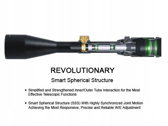 Ця модель має всі функції своїх «старших братів» - змінне збільшення, поперечне регулювання по вертикалі та горизонталі, регулювання паралакса, плавне регулювання інтенсивності підсвічування двох кольорів (червоного та зеленого) та хрест MilDot. До його головних переваг, безсумнівно, відноситься велика відстань окуляра від ока, фокусування з 3 метрів і дуже зручна установка.