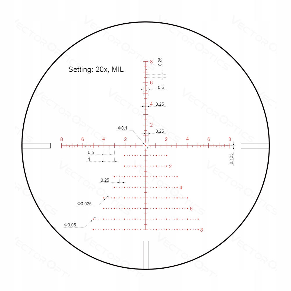 - Прицільна сітка: VCT-20A у другій оптичній площині
