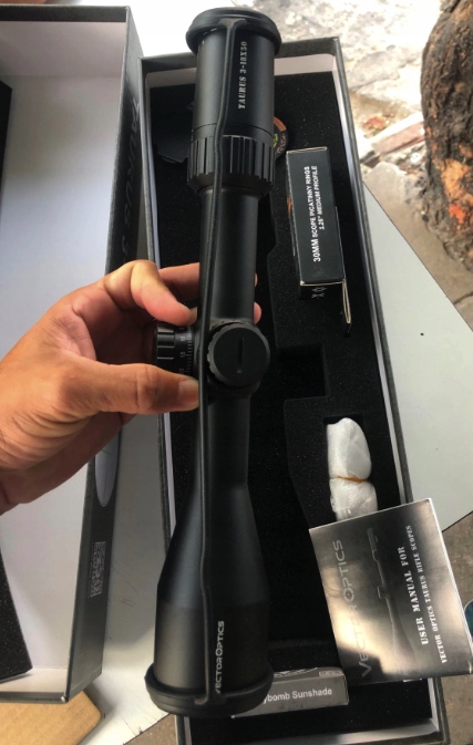 Векторний оптичний приціл. Більшість підзорних труб мають прицільну сітку, встановлену в другій фокальній площині (біля окуляра). Тоді як зараз прийнято регулювати прицільну сітку в першій фокальній площині (прицільна сітка збільшується в розмірах, коли змінюється збільшення від малого до великого). Кожна система має свої переваги. Перевага телеметричних сіток полягає в тому, що цільове зображення та відстань між точками залишаються постійними навіть при зміні збільшення. Це система, яка зараз широко використовується провідними військовими постачальниками. Діамантове чітке зображення, довгий безель, перша скляна сітка MPX1 із гравіюванням фокальної площини за німецькою технологією. Турельний замок, регулювання 1/10 MIL, монотруба 30 мм, підсвічування, бічний фокус. Бленда, стільникова бленда, тактичні кільця.