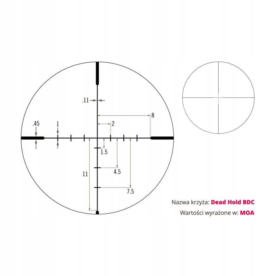 Прицільна сітка Dead-Hold BDC полегшує корекцію пострілу та усуває необхідність робити наступні корекції. Він призначений для будь-якої стрільби чи полювання, на різних дистанціях, тобто там, де є критичною необхідність тривалого прицілювання.
