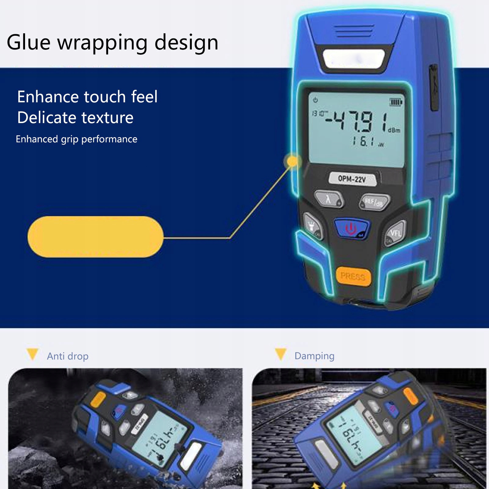 1. Діапазон вимірювання: Вимірювач оптичної потужності має діапазон вимірювання від -50 до 26 дБм з похибкою менше 0,2 дБ. Підтримує тестування мережі та точне вимірювання порядку ліній мережі. 2、Інтерфейс і зонд: цей оптичний вимірювач потужності має універсальний інтерфейс 2,5 мм, який сумісний з інтерфейсами SC, ST і FC. Чудовий зонд забезпечує високу чутливість вимірювань. 3、Автоматичне запам’ятовування довжини хвилі: цей оптичний вимірювач потужності має функцію автоматичного запам’ятовування довжини хвилі з 7 довжинами хвилі 850 нм, 980 нм, 1300 нм, 1310 нм, 1490 нм, 1550 нм, 1625 нм, зручно та практично. 4, налаштування порогу та сигналізація: підтримує налаштування порогу та автоматичне оцінювання. Після встановлення порогу на екрані з’явиться червоне попередження, коли результат вимірювання буде нижчим за встановлене значення. 5, Спосіб живлення: цей волоконно-оптичний вимірювач потужності має вбудовану літієву батарею 3,7 В, ємність 1000 мАг для тривалого терміну служби та поставляється з USB-кабелем для заряджання.