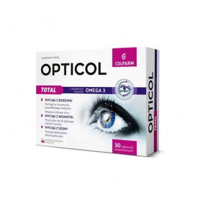 Екстракт чорниці, цинк і рибофлавін, що містяться в БАД OPTICOL Total, сприяють підтримці правильного зору. Продукт збагачений цінними ненасиченими кислотами ОМЕГА 3, які підтримують правильну роботу серця.