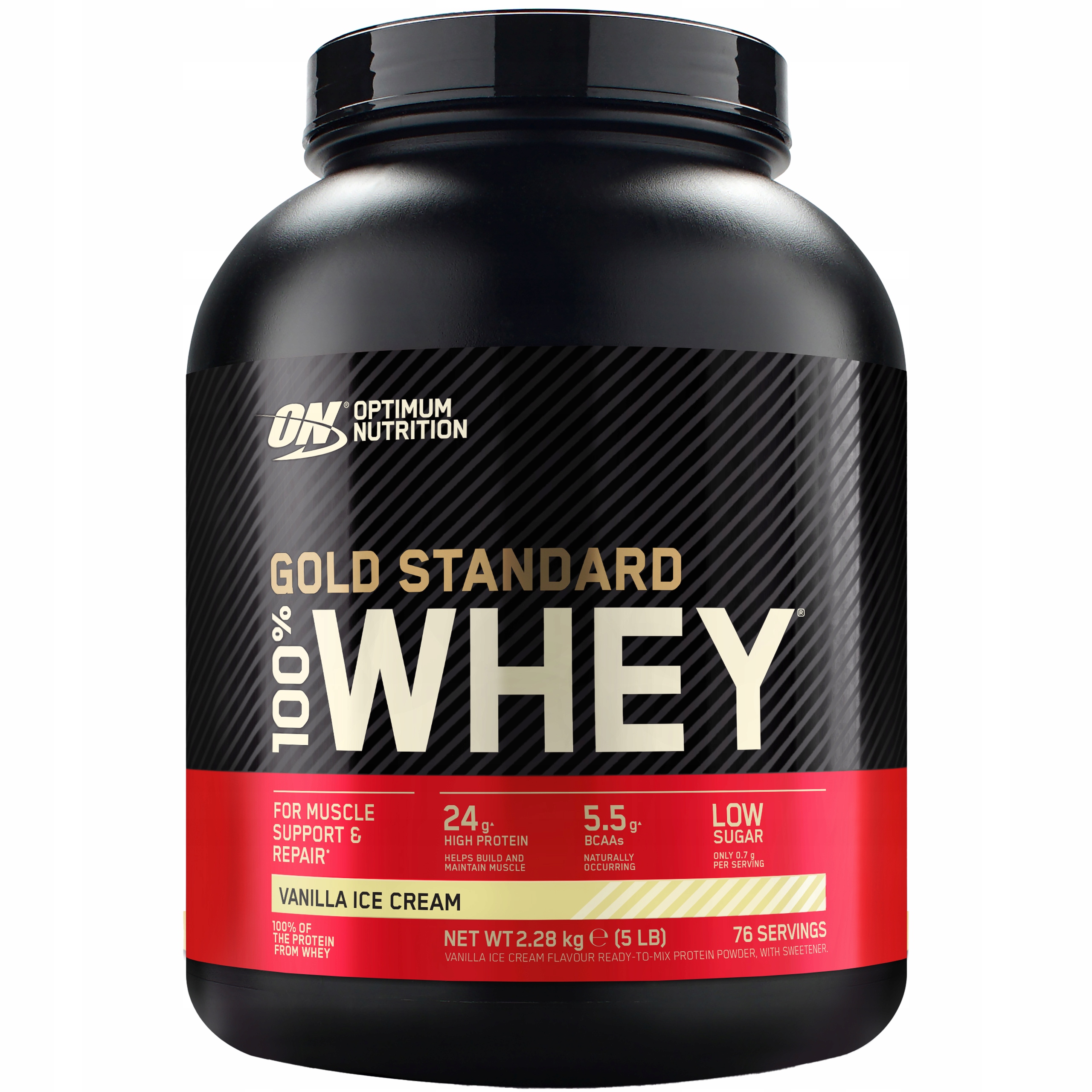 100% Whey Gold Standard від відомої компанії OPTIMUM NUTRITION — це одна з найякісніших протеїнових добавок, яка повністю базується на концентраті (WPC), ізоляті (WPI) і гідролізованому ізоляті сироваткового білка. Завдяки цьому 100% Whey Gold Standard гарантує, що організм спортсмена отримує протеїни та пептиди найвищої біологічної цінності та найшвидший час засвоєння в травній системі людини. Крім того, 100% Whey Gold Standard містить запатентований комплекс ферментів AMINOGEN, що забезпечує повне і швидке перетравлення кожної порції продукту. Перевагою є інстантизована форма, яка гарантує високу розчинність кондиціонера. Кожна порція забезпечує 24 г біологічно найвищої цінності сироваткового протеїну, який є спеціалізованою сумішшю білкових фракцій, виробленої OPTIMUM NUTRITION. Ця єдина у своєму роді формула, вироблена у відповідному діапазоні низьких температур, містить концентрат сироваткового протеїну (WPC), ізолят сироваткового білка з мікроперехресною фільтрацією (WPI) і повністю гідролізований ізолят, що робить його найціннішим продуктом, доступним на ринку. ринку.