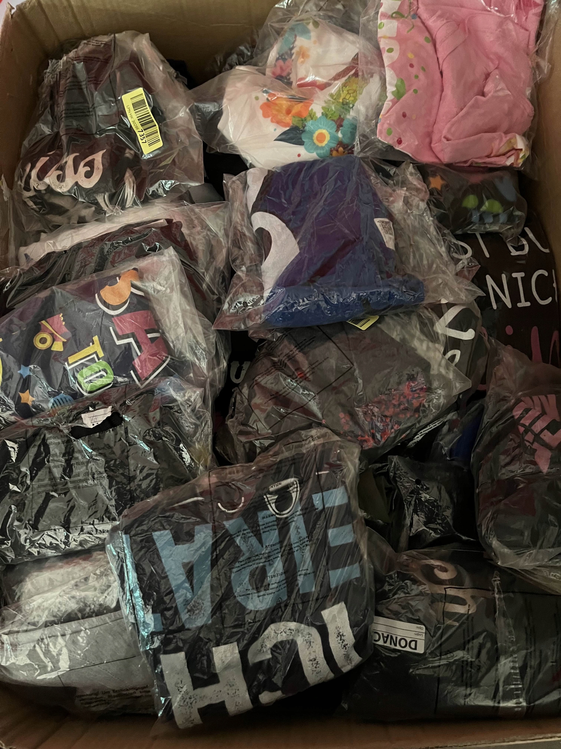 Я продаю оптову коробку 100 штук бавовняних сорочок. Ідеально підходить для людей, які ведуть в Інтернеті або стаціонарні продажі. Одяг походить від фраз - більшість у дуже хорошому стані може виникнути незначні візуальні недоліки.