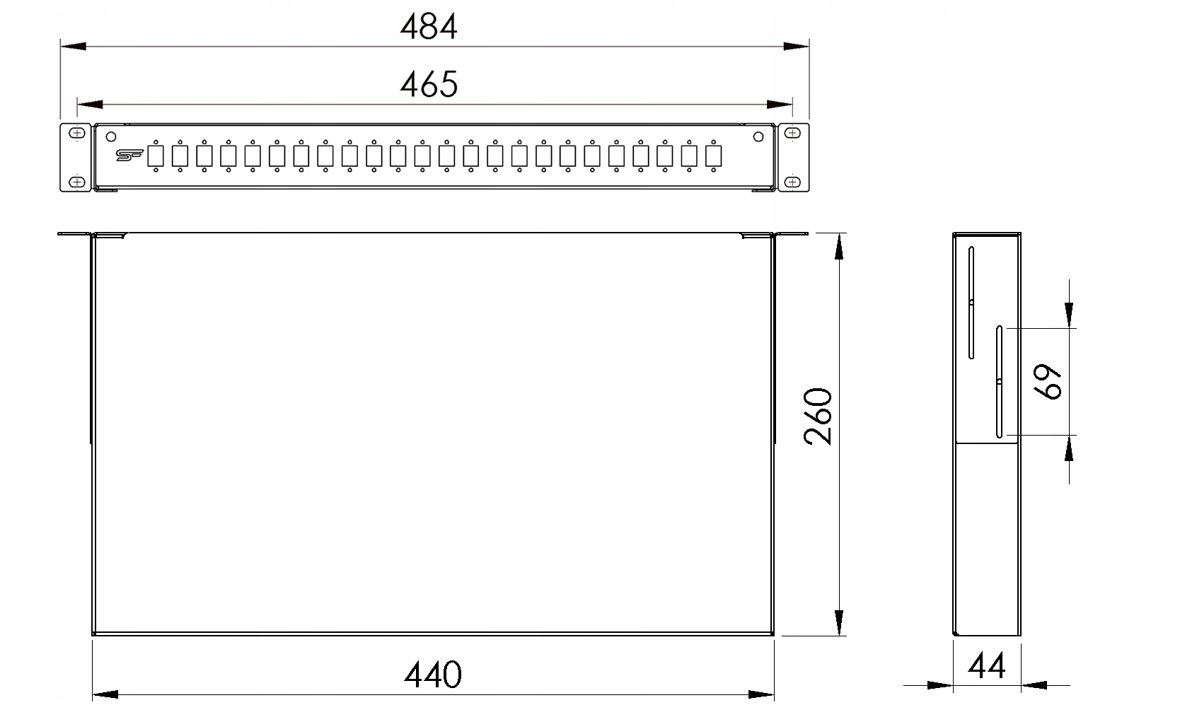 Оптоволоконна розподільна коробка 19 '' 1U 24xSC Simplex