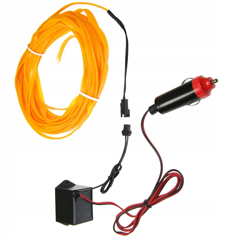 Електролюмінісцентний кабель EL WIRE 12V, бурштиновий, довжиною 10м, для візуального налаштування.