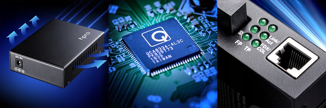 Для оптичних волокон він пропонує високий рівень продуктивності, необхідний для реалізації пропускної здатності Gigabit Ethernet. Крім того, він також має розширені апаратні функції, які дозволяють краще використовувати оптоволоконне з’єднання. Внутрішній чіп Qualcomm забезпечує стабільну передачу, високу ефективність і потужну здатність запобігати перешкодам.