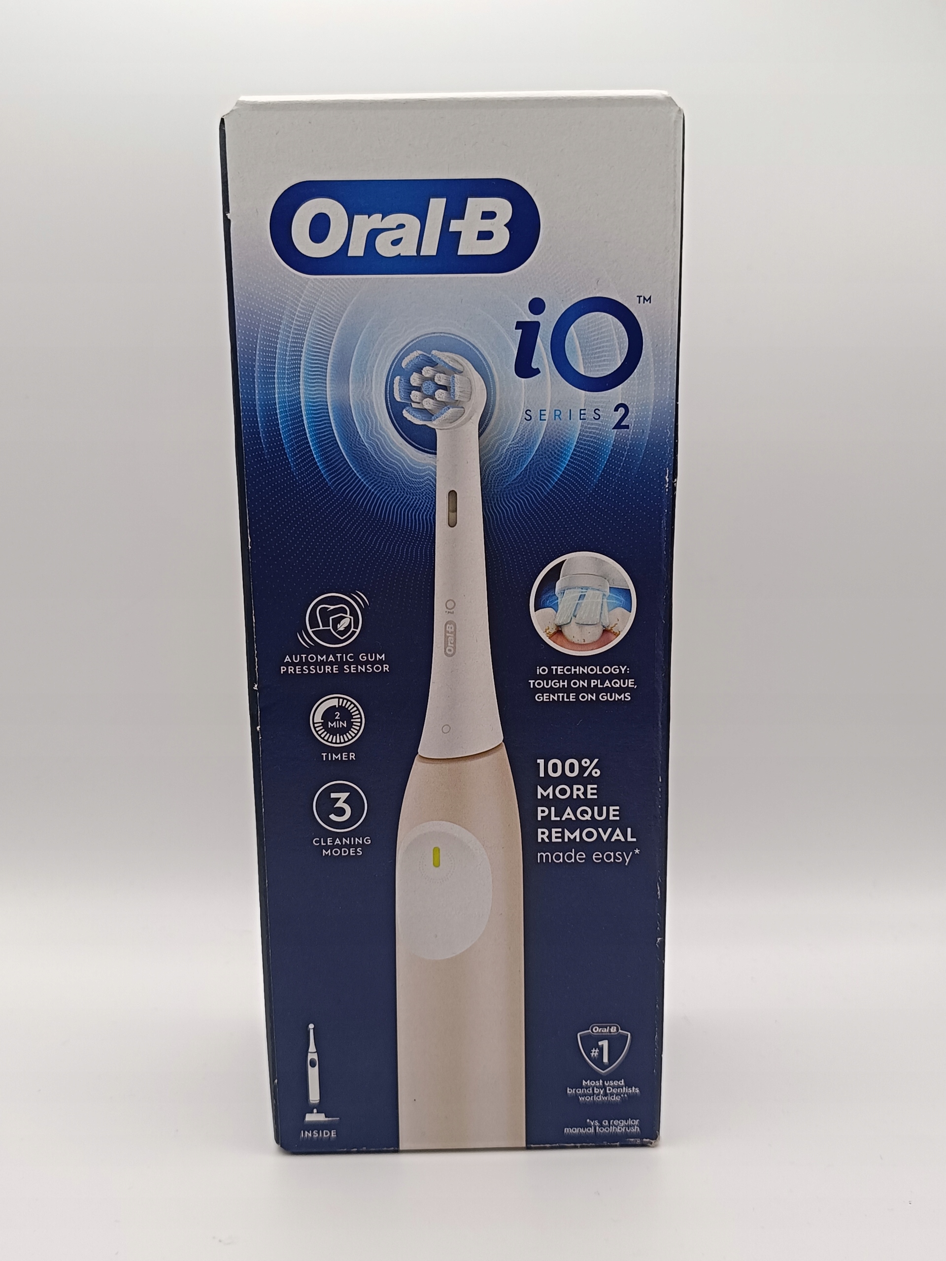 - Електрична зубна щітка Oral-B iO Series 2 принесе відчуття професійного чищення зубів у ваш дім. Завдяки технології iO він стійкий до зубного нальоту, але в той же час ніжний до ясен. Автоматичний датчик тиску захищає ясна від надмірного тиску. Три режими очищення та двохвилинний таймер забезпечують ретельне очищення та видаляють на 100% більше нальоту, ніж звичайна ручна зубна щітка. Інвестуйте у свою посмішку з електричною зубною щіткою Oral-B iO Series 2!