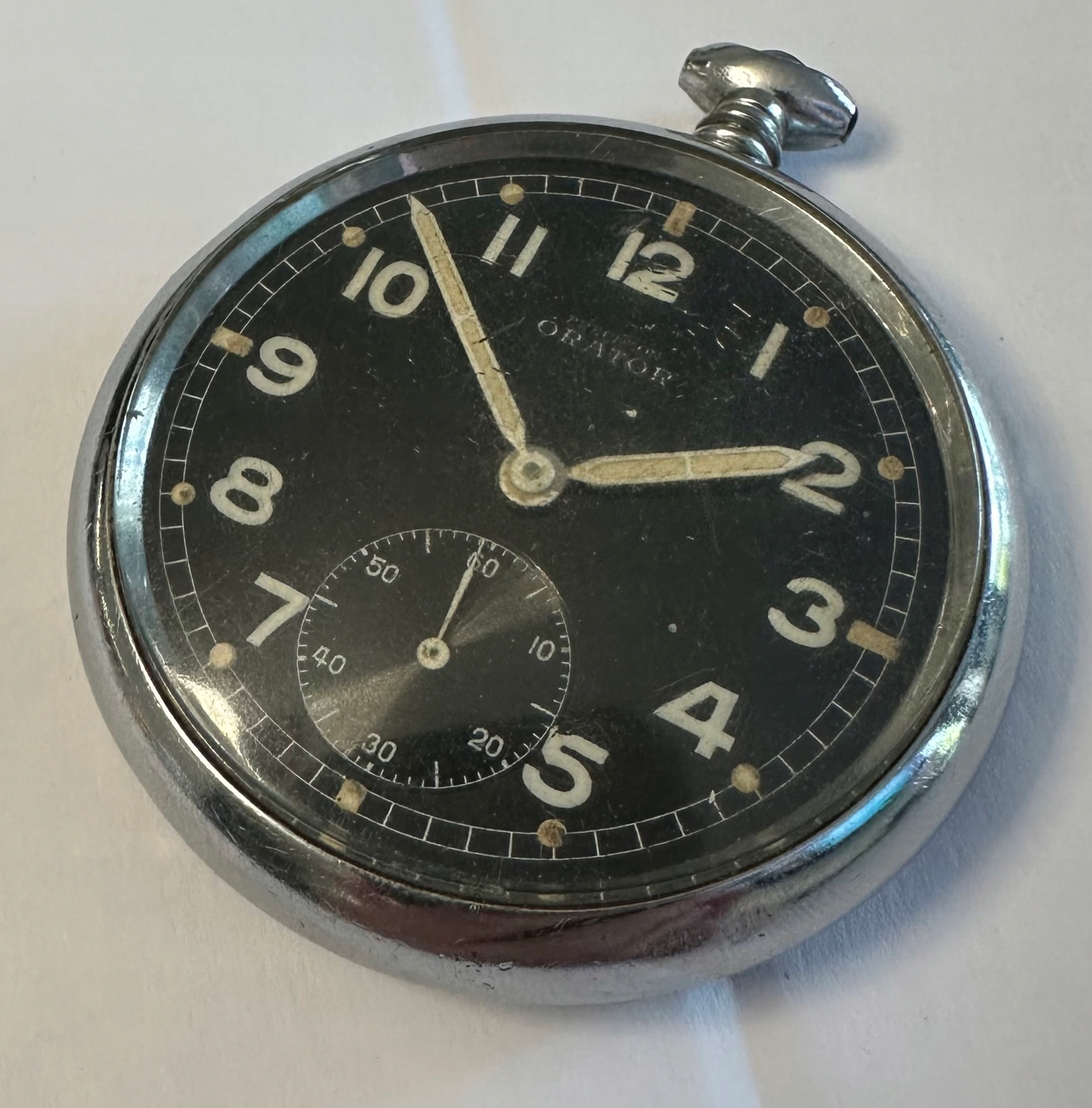 Продам унікальний військовий кишеньковий годинник від відомої швейцарської фірми ORATOR PRECISION 1940-х років в оригінальному стані на запчастини або ремонт. Стан годинника видно на фото.