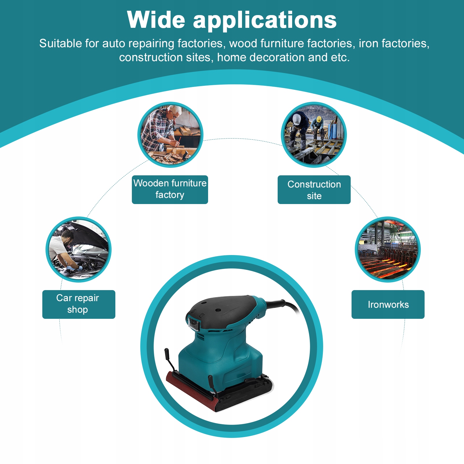 - Багатофункціональний, шліфування деревини, полірування автомобілів, видалення металевої іржі, полірування меблів, полірування фарби тощо.
