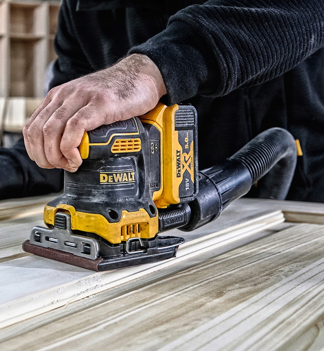 Орбітальна шліфувальна машина DeWalt із прямокутною ніжкою та безщітковим двигуном 18 В забезпечує швидку й точну обробку матеріалів навіть у дуже твердій деревині.