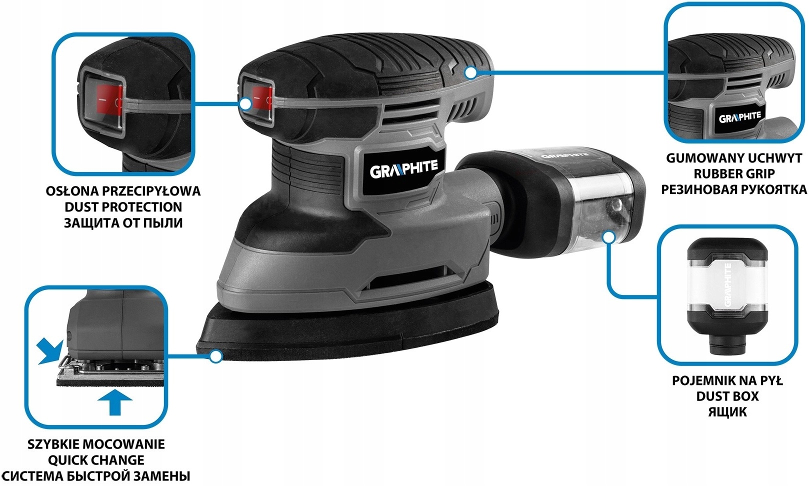 Орбітальна шліфувальна машина GRAPHITE Delta 180 Вт 3 фути