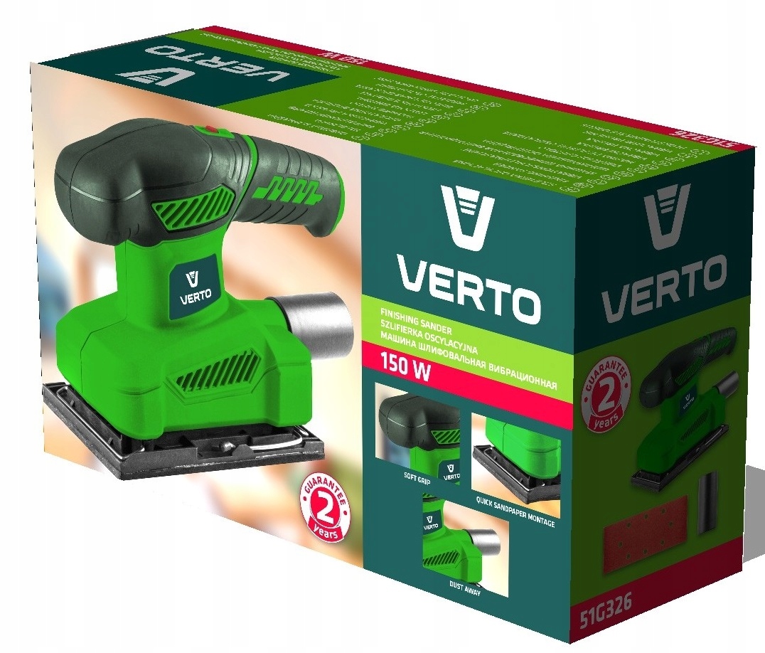 Шліфмашина має ручку для кріплення абразивного матеріалу. Амплітуда його коливань 2 мм. Ергономічна форма і нековзка ручка роблять роботу з цим інструментом зручною. М'ясорубка дозволяє ефективно виконувати завдання однією рукою. Завдяки системі видалення пилу зберігає робоче місце в чистоті. Це практичний інструмент VERTO, який підійде в будь-якій майстерні.