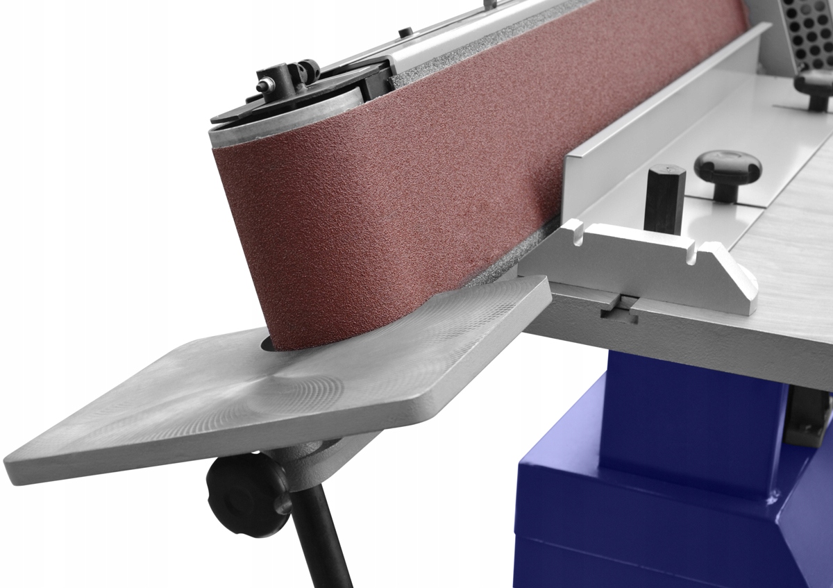 Рухомий шліфувальний вузол, який дозволяє шліфувати вертикально та горизонтально. Ця шліфувальна машина має додатковий шліфувальний стіл з регульованою висотою, а натяжний пристрій забезпечує рівномірний натяг стрічки. Машина характеризується швидкою та простою заміною шліфувальної стрічки за допомогою важеля.