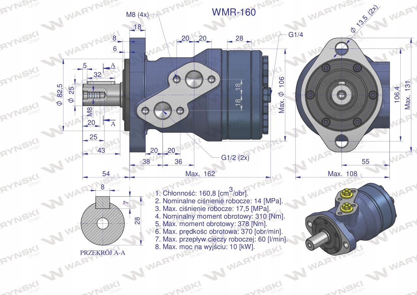 орбітальний гідравлічний двигун 160 см3/rir (140 бар/макс. 200 бар) waryński