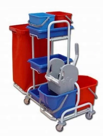 - Три ящики для сміття, призначені для транспортування прибирального обладнання, 28 см х 43 см