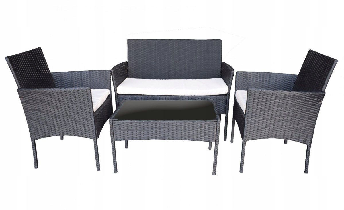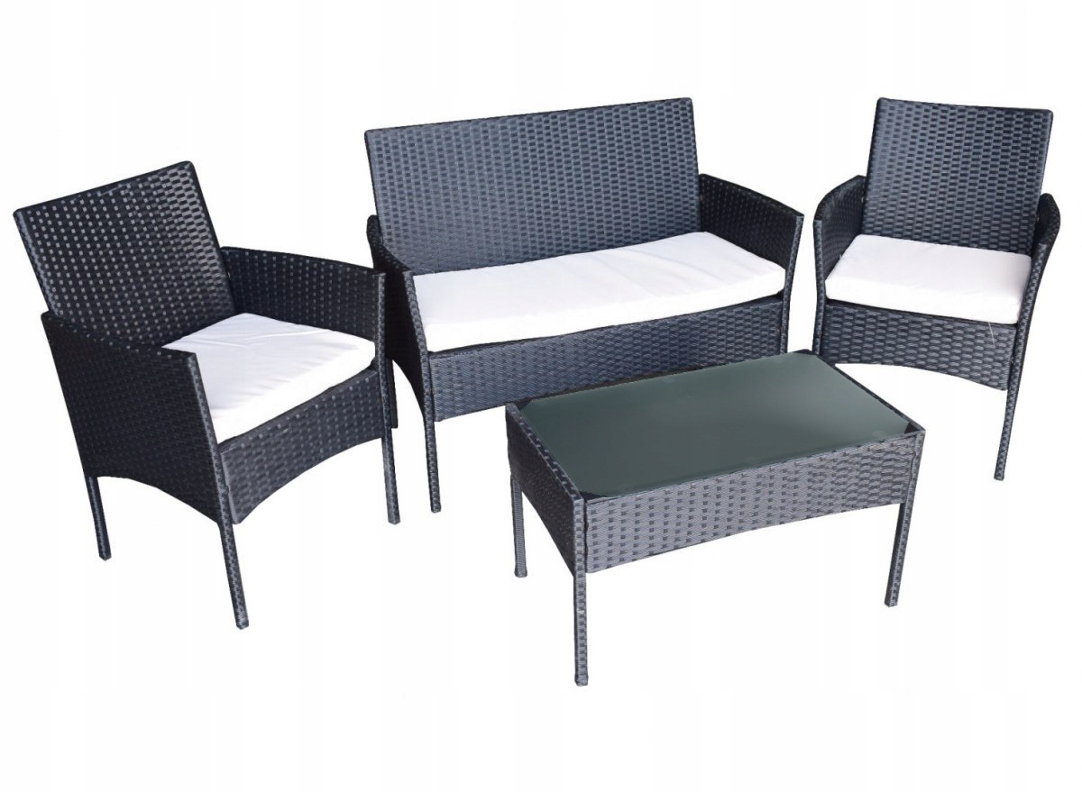 КОМПЛЕКТ МЕБЛІВ З РОТАНГА, 2-МІСНЕ СИДІННЯ, 2 СТІЛЬЦЯ, ЧОРНИЙ КАВАЛЬНИЙ СТОЛ