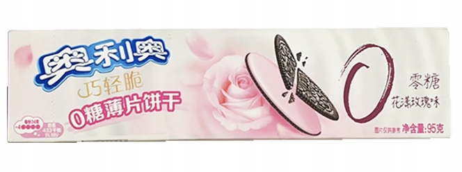 Тонке печиво Орео з какао без додавання цукру з ніжною начинкою зі смаком троянди.