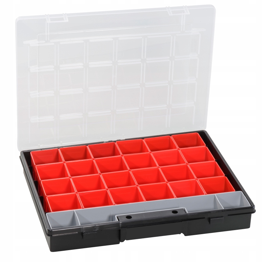 Orgaznier з 24 внутрішніми контейнерами в комплекті, виготовлений з високоякісного пластику, гарантує високу якість виконання. Можливість самостійного налаштування робить органайзер дуже універсальним інструментом, який стане в нагоді в багатьох завданнях.