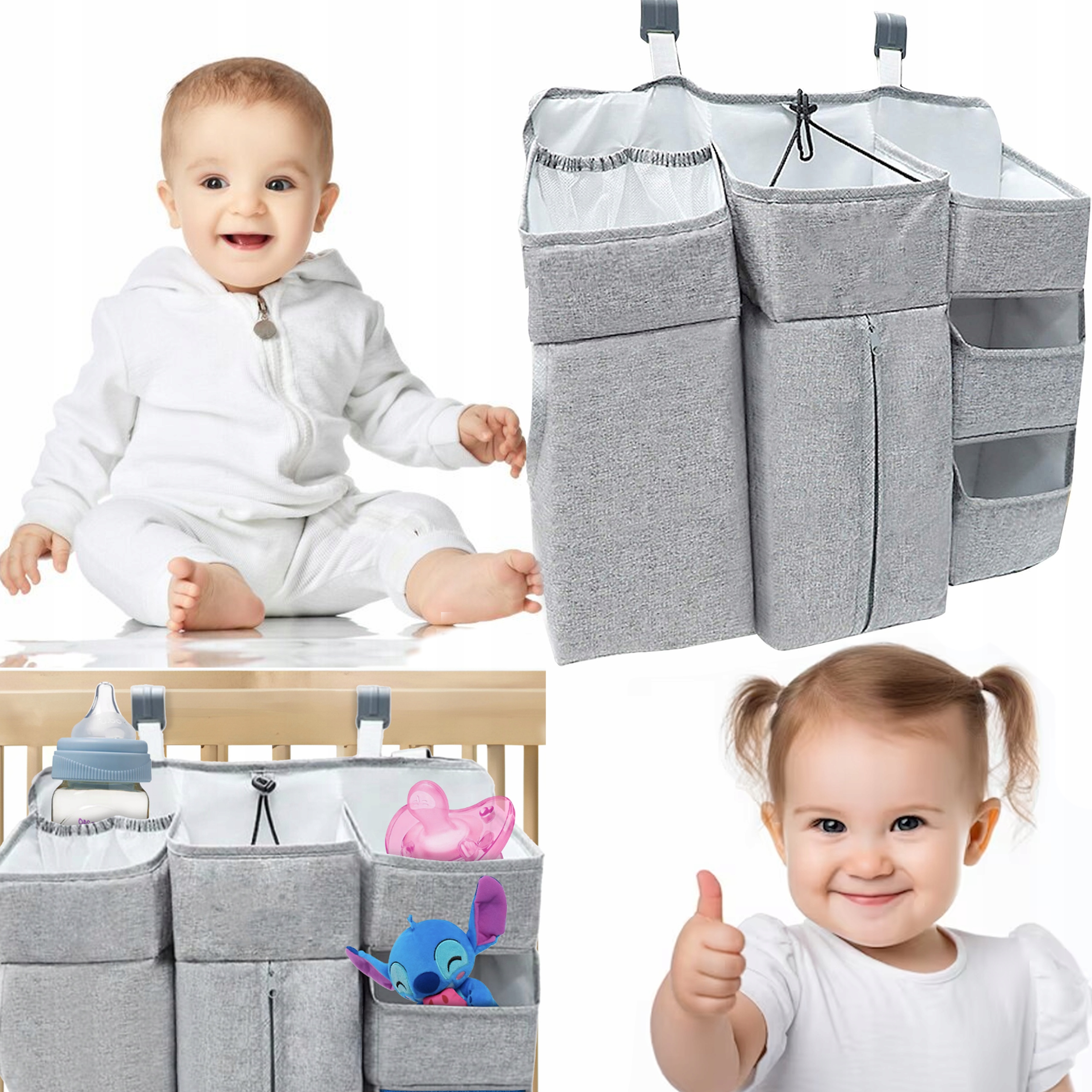 Багатофункціональний аксесуар для ліжечка призначений для зберігання засобів догляду за дитиною, підгузків, серветок, одягу, пляшечок, пустушок та інших дитячих аксесуарів. Завдяки нашому органайзеру всі необхідні продукти у вас під рукою! Органайзер для ліжечка однозначно полегшить дотримання порядку біля ліжка та зробить повсякденний догляд за малюком ефективнішим.