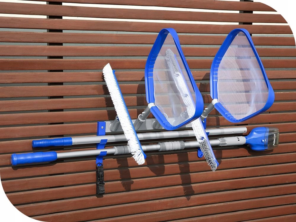 Одночасно вміщує до 5 аксесуарів для очищення басейну, таких як: скиммер, щітки, пилососи, шланги.