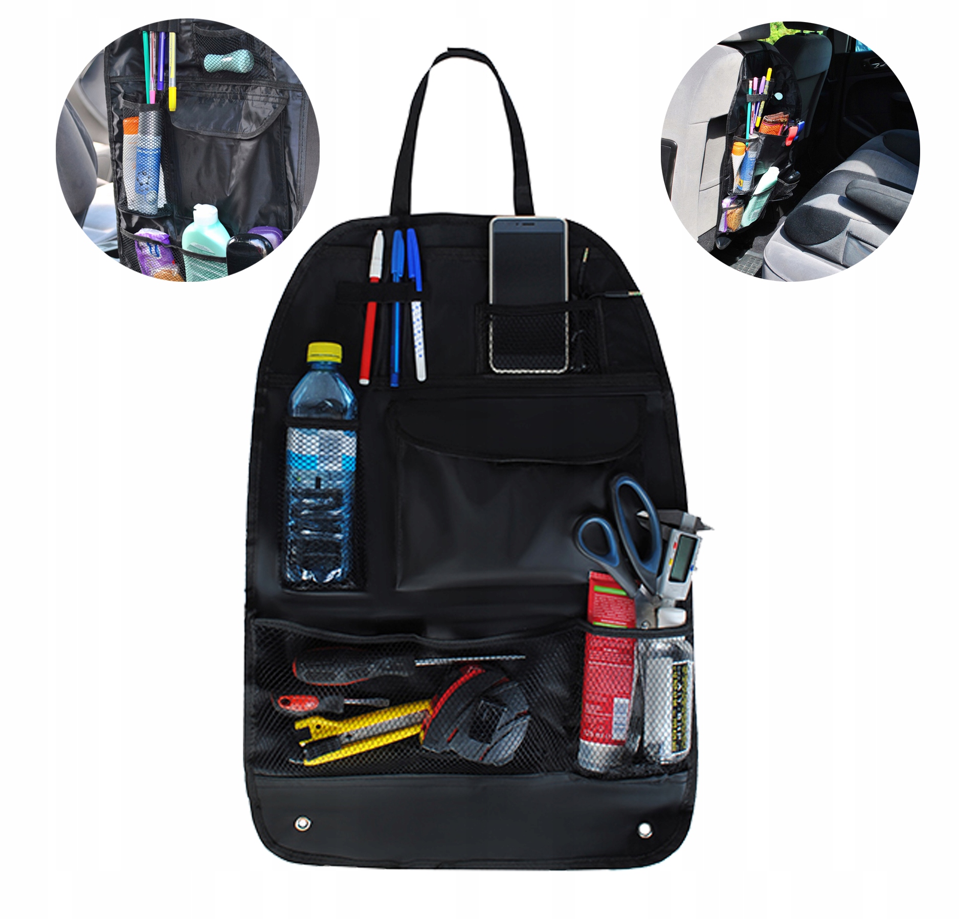 Органайзер для автомобільного крісла – це аксесуар, який можна легко прикріпити до будь-якого автомобіля за допомогою липучок і ременів із металевими гачками. Це також гарантує стабільне утримання предметів, що зберігаються в ньому.