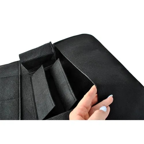 Чудове рішення, яке стане в нагоді практично в кожному автомобілі. Органайзер для автомобільного крісла дозволяє легко організувати найнеобхідніші речі в машині і швидко отримати до них доступ при необхідності. Фетровий автомобільний органайзер легко зібрати - просто прикріпіть його верхню частину до нижньої частини підголівника (за допомогою липучок на ременях), а нижню частину зачепіть за нижню частину автокрісла (за допомогою металевих гачків на ременях). Автомобільний органайзер легко регулюється практично під будь-яке автокрісло - стійке кріплення гарантує, що органайзер не впаде під час руху.