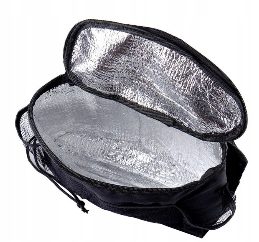- Оснащений 3 сітчастими кишенями (наприклад, для напоїв), нижньою кишенею для серветок і основним термовідсіком на блискавці, який збереже їжу свіжою.