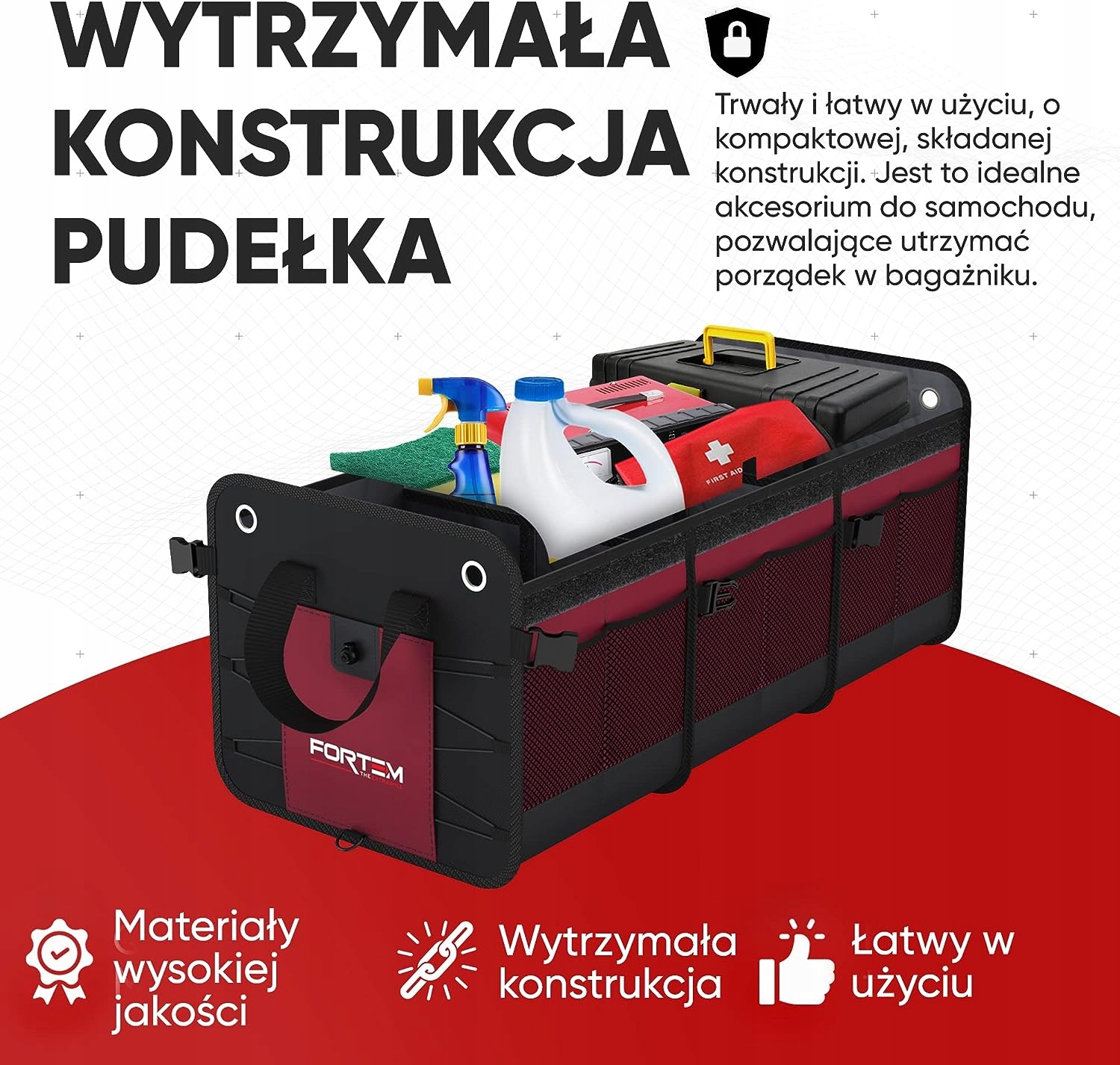 Конструкція стабільної коробки. Автомобільна коробка преміум-класу посилена жорсткими базовими балками, які підтримують задню та кожну бічні стінки. Менше безладу завдяки багатьом бічним кишеням і 6 відділенням. Нижня частина органайзера водонепроникна. Залишається на місці Органайзер u2013 має ремені проти ковзання, які запобігають зсуву, і регульовані ремені для кріплення до багажника. Зберігайте дрібні речі у вузькій сітці або в кишені з кришкою. Ви можете прикріпити принаймні 2 сумки до багажника за допомогою сполучних пряжок. Додатковий рушник з мікрофібри в комплекті. Багатофункціональні органайзери для скриньок u2013 полегшують зберігання та впорядкування. Зберігайте різноманітні продукти від продуктів до офісного приладдя, аксесуарів, сумок, взуття чи дитячих іграшок. Зменшіть безлад у своєму багажнику та звільніть місце для холодильника чи туристичного спорядження. Складаний органайзер u2013 зі знімною кришкою можна перемістити на заднє сидіння, переднє сидіння або посередині автомобіля, оскільки він складається в 1 відділення. Зберігайте його в складеному вигляді в багажнику і використовуйте як контейнер для покупок або навіть як контейнер для зберігання в гаражі. Складна знімна кришка тримає речі поза полем зору для додаткової безпеки. Довговічність u2013 Незалежно від того, чи це велика вантажівка, позашляховик чи седан, цей вантажний бокс ідеально підходить для будь-якого розміру багажника. Органайзер брендового багажника міцний.