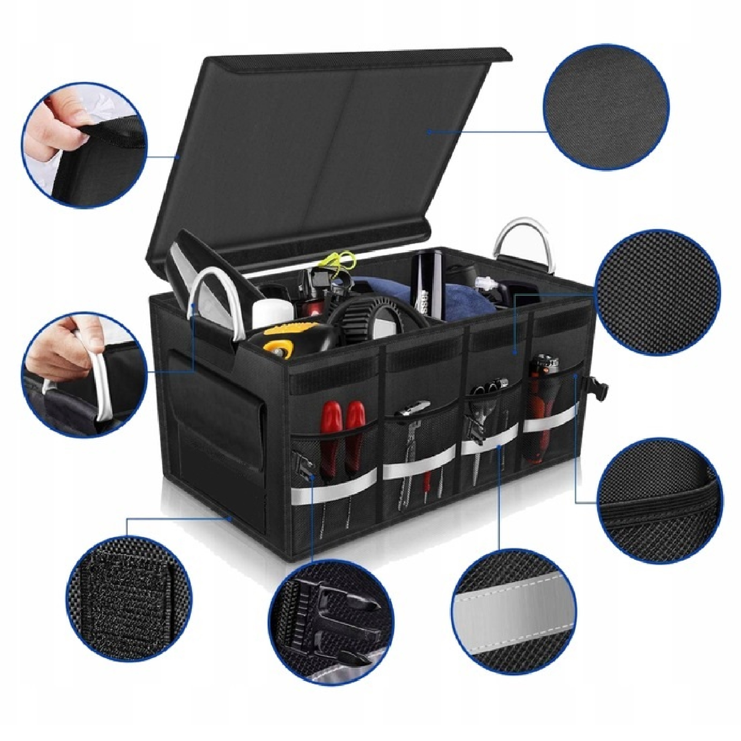- РУЧКИ ДЛЯ ПЕРЕНОСЕННЯ< /b >- безперечною перевагою цього практичного багажника є металеві ручки для перенесення. Це дуже зручне рішення, оскільки органайзер перетворюється на практичну сумку (виходячи з машини, не потрібно нічого пакувати, можна просто взяти в багажник).