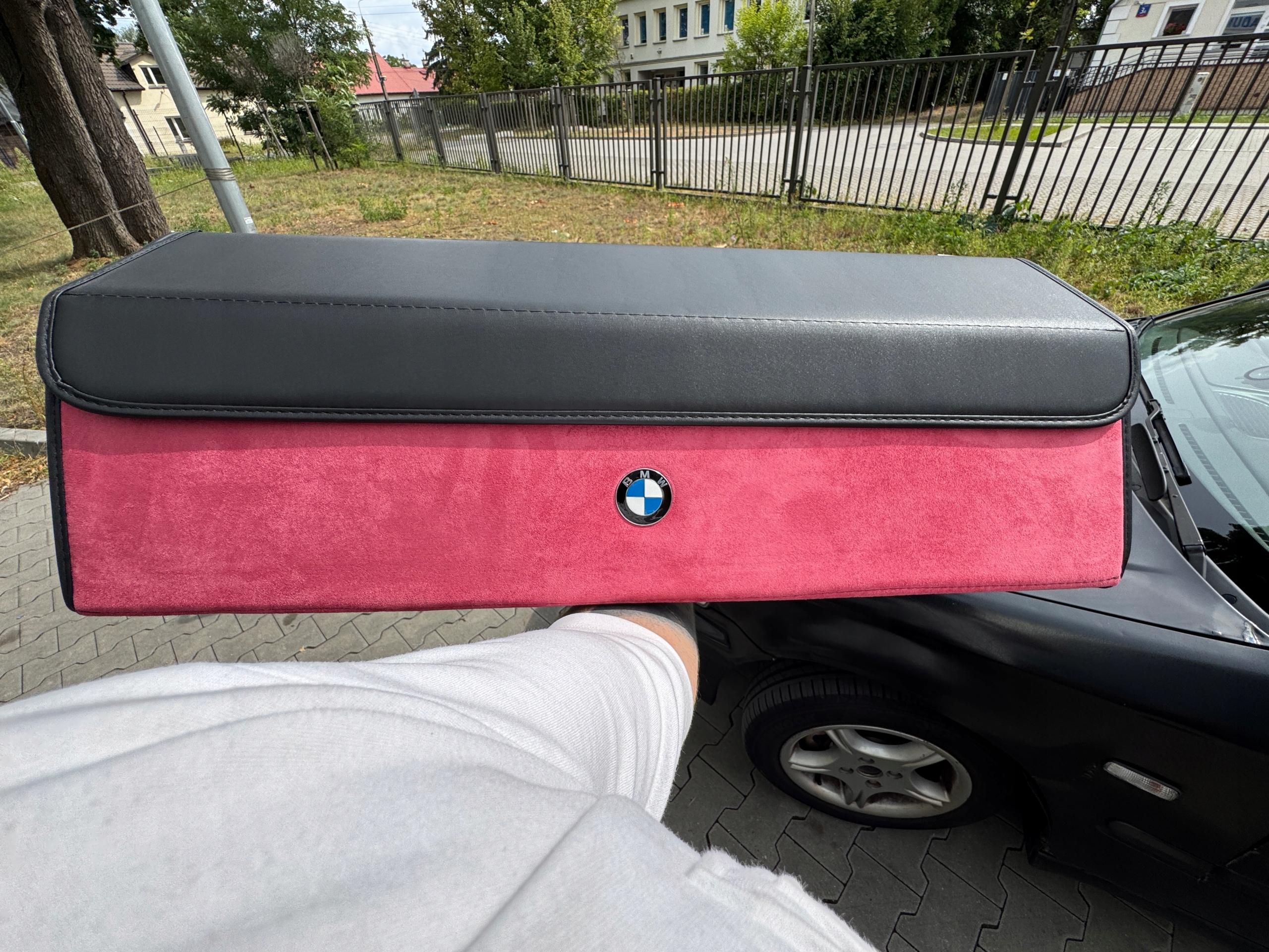 Органайзер для багажника шкіряний з логотипом BMW 75 × 31 × 31, замша, бордовий