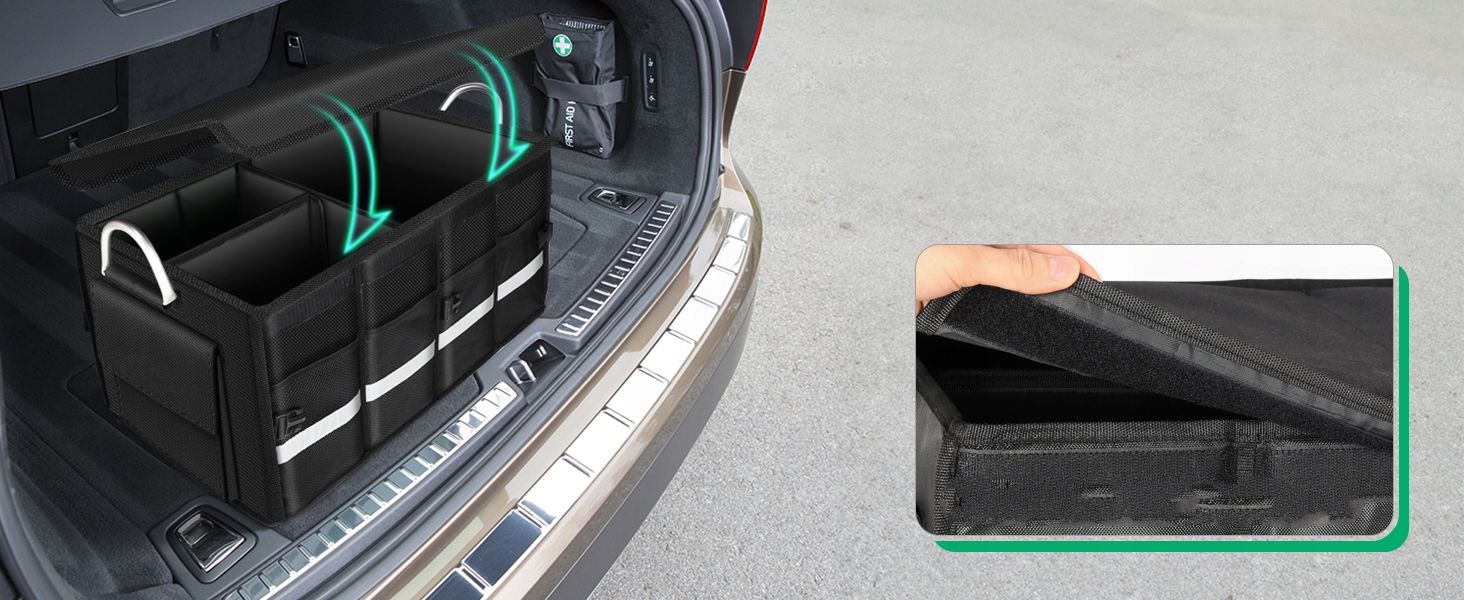 Завдяки опції складання ви можете легко скласти органайзер, коли він не використовується, що робить його надзвичайно практичним рішенням для кожного водія. Надзвичайно функціональний і простий у використанні — незамінне доповнення до багажника будь-якого автомобіля.