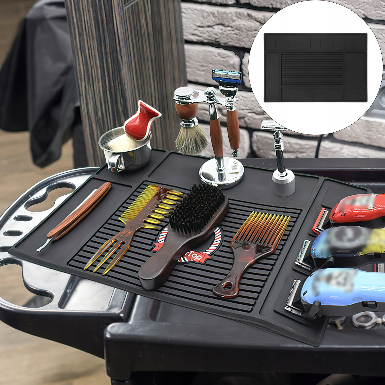 ✅Цей перукарський килимок має магнітну поверхню, яка ефективно утримує ножиці, машинки для стрижки, тримери та леза.